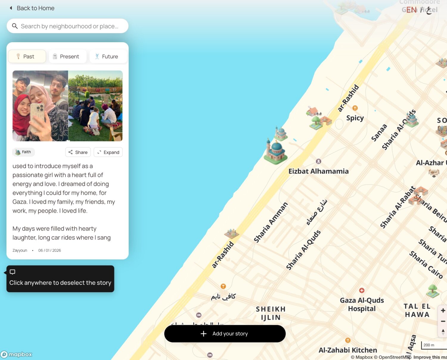 Gaza na 7 oktober, verteld door Palestijnen zelf. In elk verhaal staat één leven centraal. In samenwerking met Lina Ayesh en Gaza Living Story.