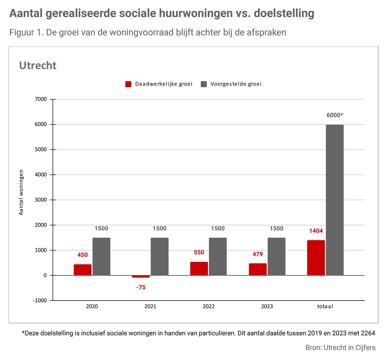 Maar het mes van het mengbeleid snijdt aan twee kanten. Tegelijkertijd verdwijnen ruim 1.000 sociale huurwoningen door verkoop, sloop, renovatie en liberalisatie, vooral in Overvecht (363) en in wijk Noordwest (457). Hierdoor groeit de totale voorraad slechts met 1.402 woningen, een kwart van het oorspronkelijke doel.